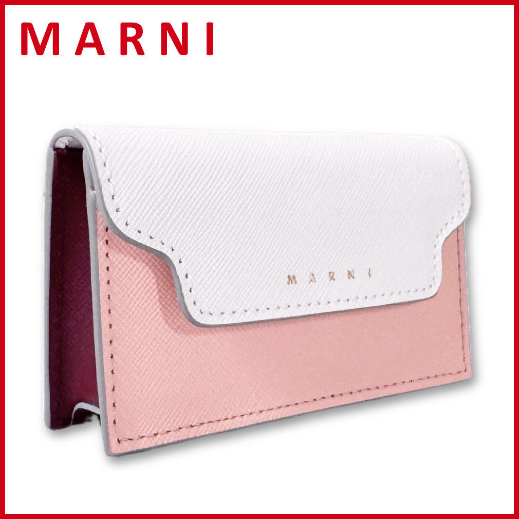 - 新品マルニMARNIレザー バイカラーカードケース(名刺入れ)ピンク×白★