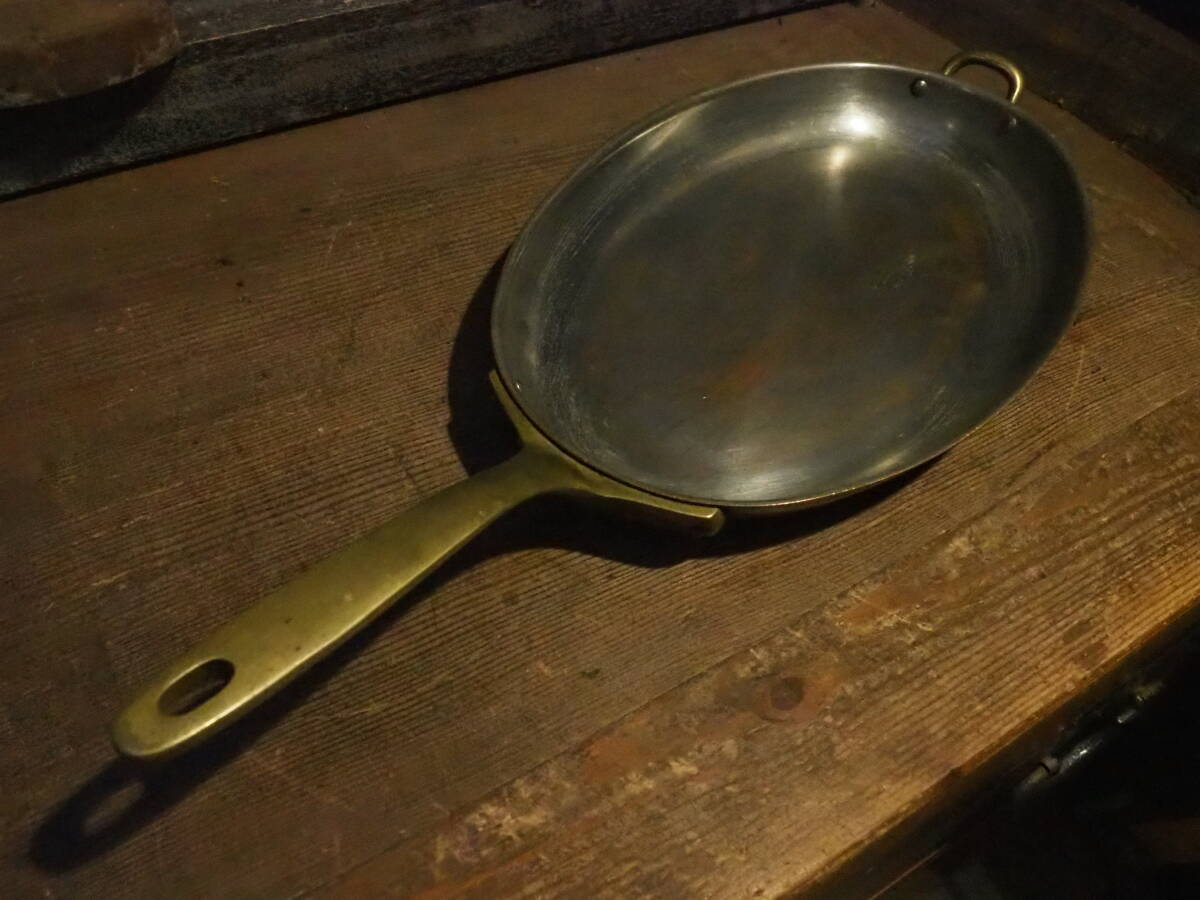 - 【楕円型銅製フライパン】真鍮ハンドル古道具アンティーク骨董インテリア鍋パエリヤフレンチカフェ調理器具キッチンインダストリアル