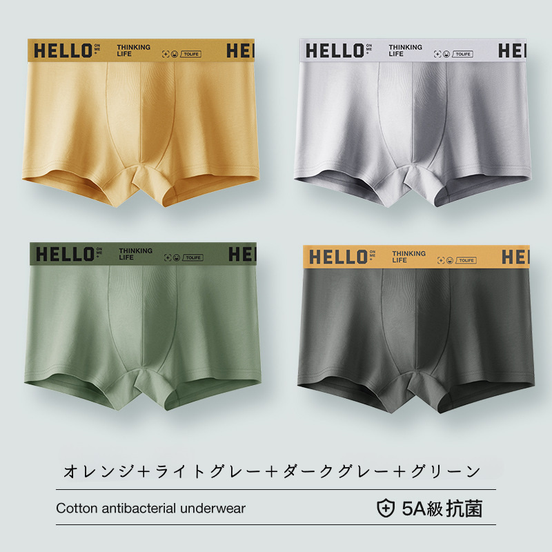 - 【HELLO THANKING LIFE 4枚組】4色セット★メンズボクサーパンツ Lサイズ 伸縮性・通気性・抗菌作用