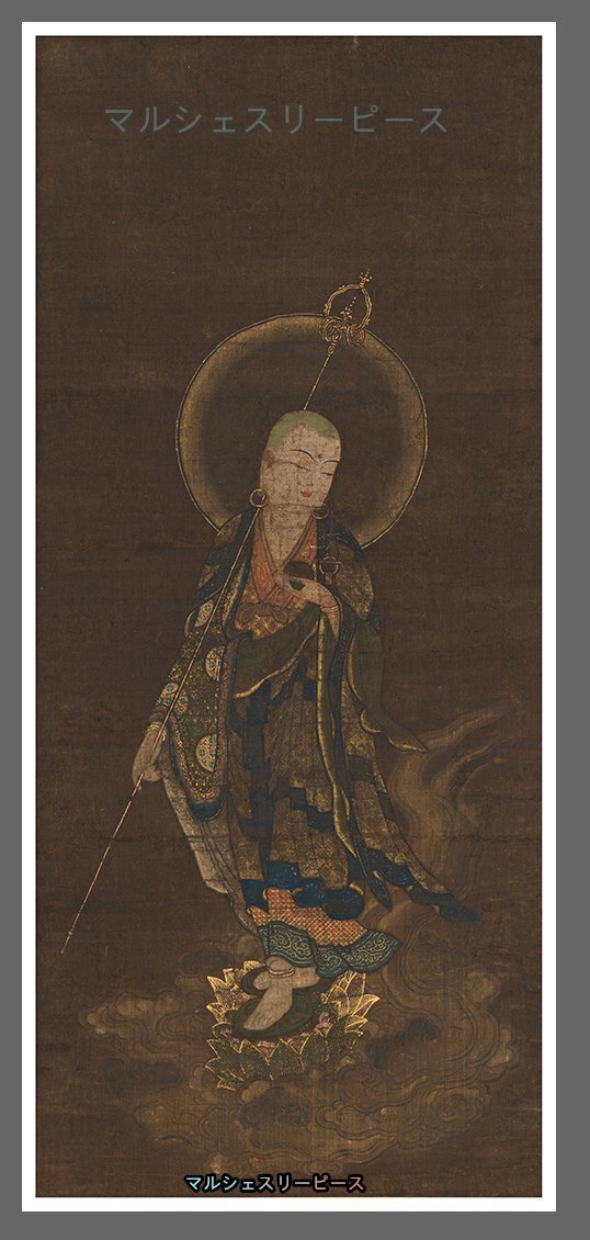 - 絵絹 地蔵菩薩 表装なし 仏画 仏像 仏教美術 掛け軸 護符開運 風水お守り 厄除け 装飾収蔵
