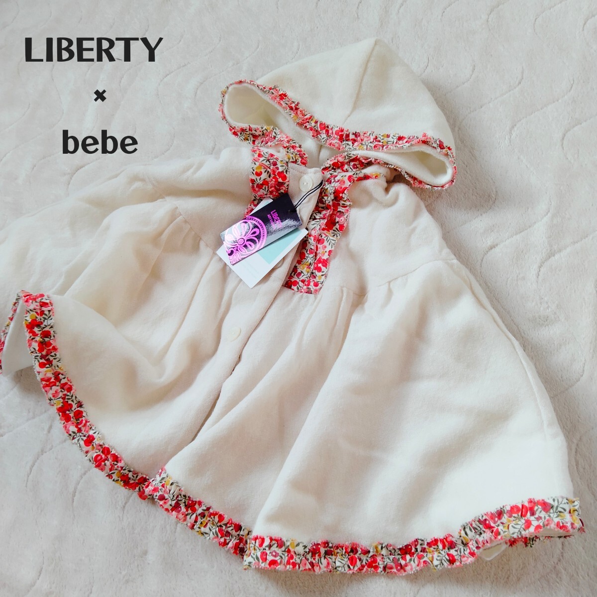 > 未使用*bebe×LIBERTY*ポンチョ*フード付き*ベベ*リバティ*花柄*50~90cm*定価1.3万*キッズ*女の子*ベビー