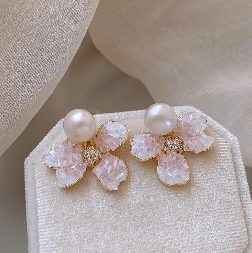 - 【新品未使用】フラワー パールピアス グラデーション ピンク 結婚式 パーティフォーマル レディース