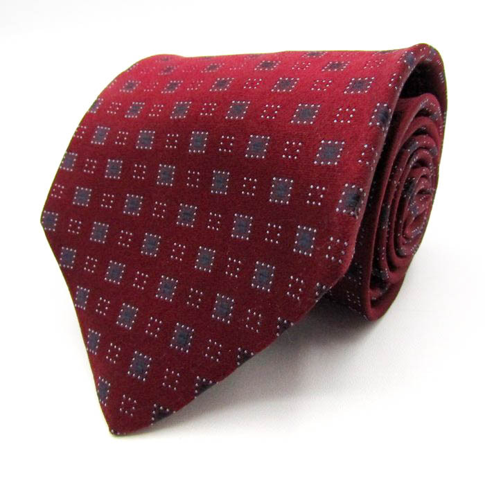 - ダナキャラン ブランド ネクタイ 小紋柄 スクエア柄 ドット シルク アメリカ製 PO メンズ ワインレッド Donna Karan
