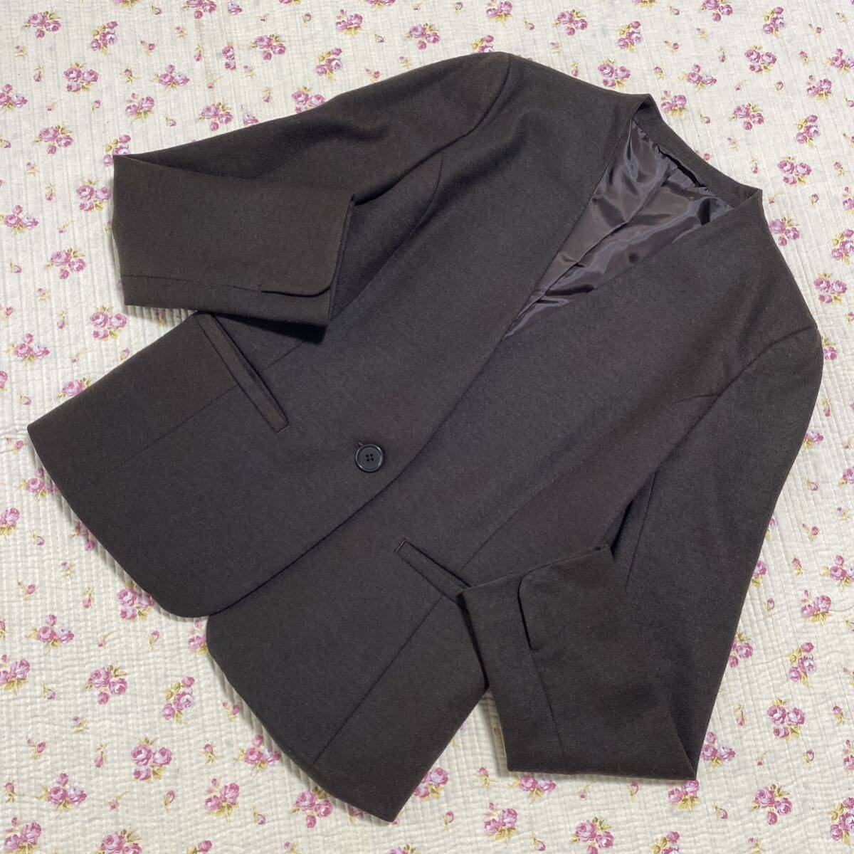 - ザスーツカンパニー Vカラー 38 ノーカラージャケット カーキブラウン DMW