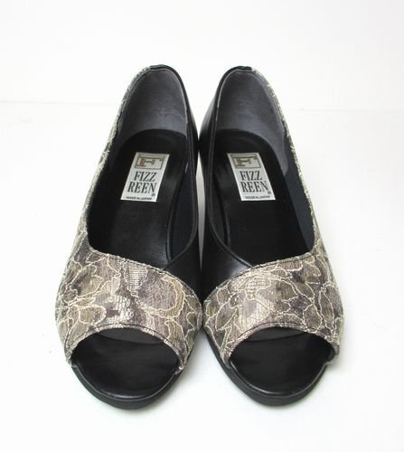 > ♪美品!FIZZ REEN(フィズリーン)オープントゥ/ウェッジソール/レース&レザー/22.5㎝EEE/日本製/幅広/シューズ/靴/レディース