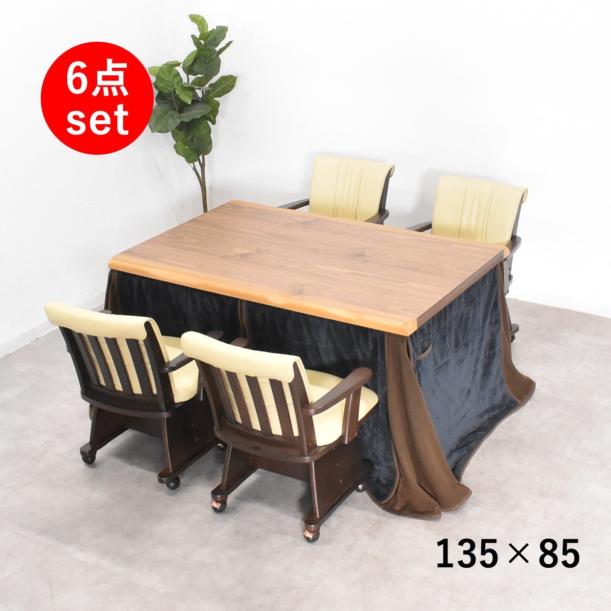 - 【限定送料無料】ウォールナット材135cm幅こたつダイニングテーブル6点セット アウトレット家具【新品 未使用 展示品】KEN