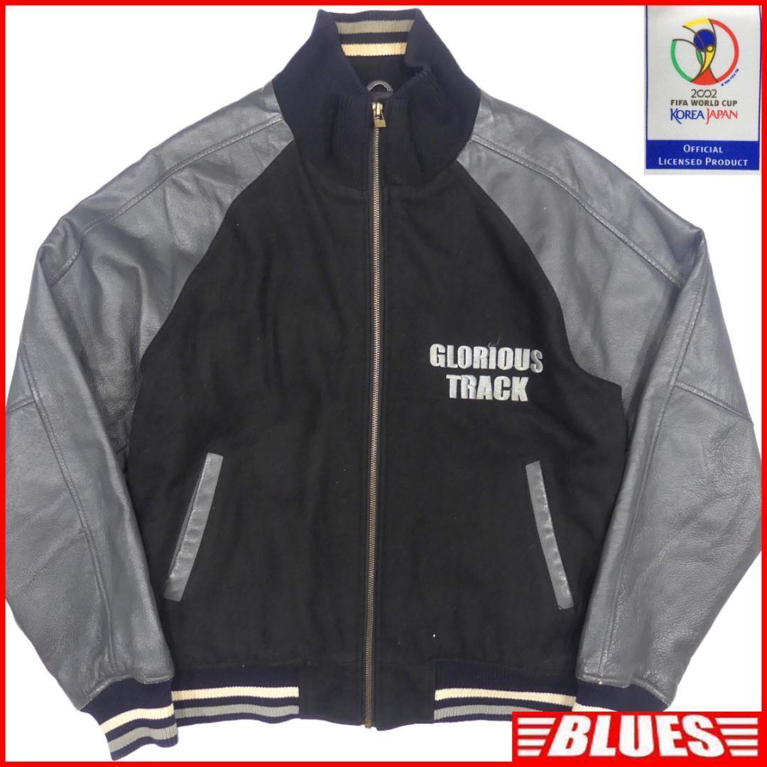 > 即決★FIFA WORLD CUP★メンズXL レザーアームスタジャン ワールドカップ LL 黒 グレー 本革 ブルゾン 本皮 ジャンパー 革ジャン