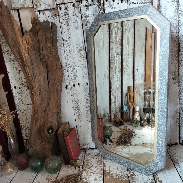 > イタリア ヴィンテージ ウッドフレーム ウォールミラー 79×44cm 大型 木枠 壁掛け鏡 シンプル 伊 ビンテージ アンティーク 古道具 西洋