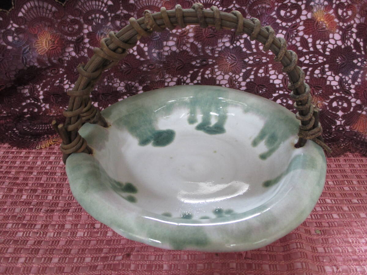 - ★持ち手のついた器 径19.5㎝ 高さ14㎝(持ち手入れて)窯キズのような物あり tm2409-6-4★