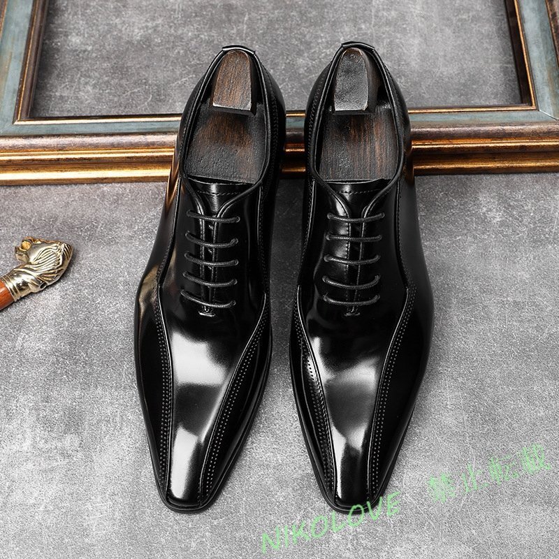 - 新品 最高級 ビジネスシューズ メンズ ドレ 本革 レザーシューズ 冠婚葬祭 通勤 個性 手塗仕上げ 革靴 ブラック 24~27cm LF850