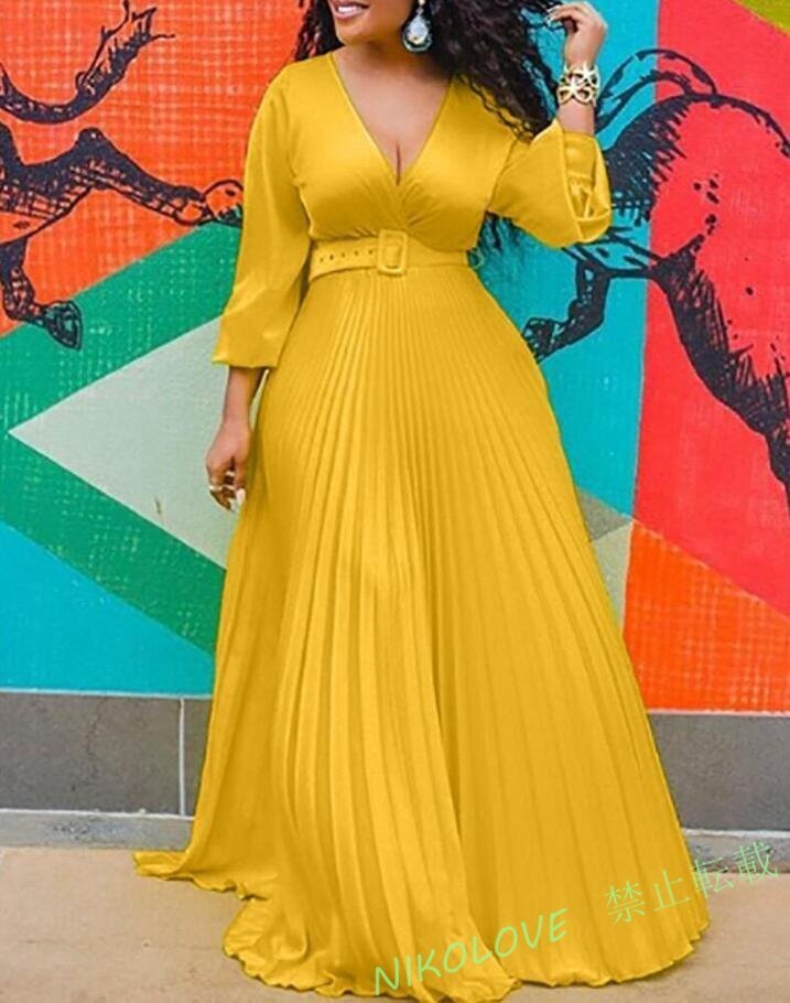 - ☆上品レディース ワンピース 20代30代40代 着心地抜群 通勤 ドレス発表会dress ロング丈 シフォン イエロー LL141