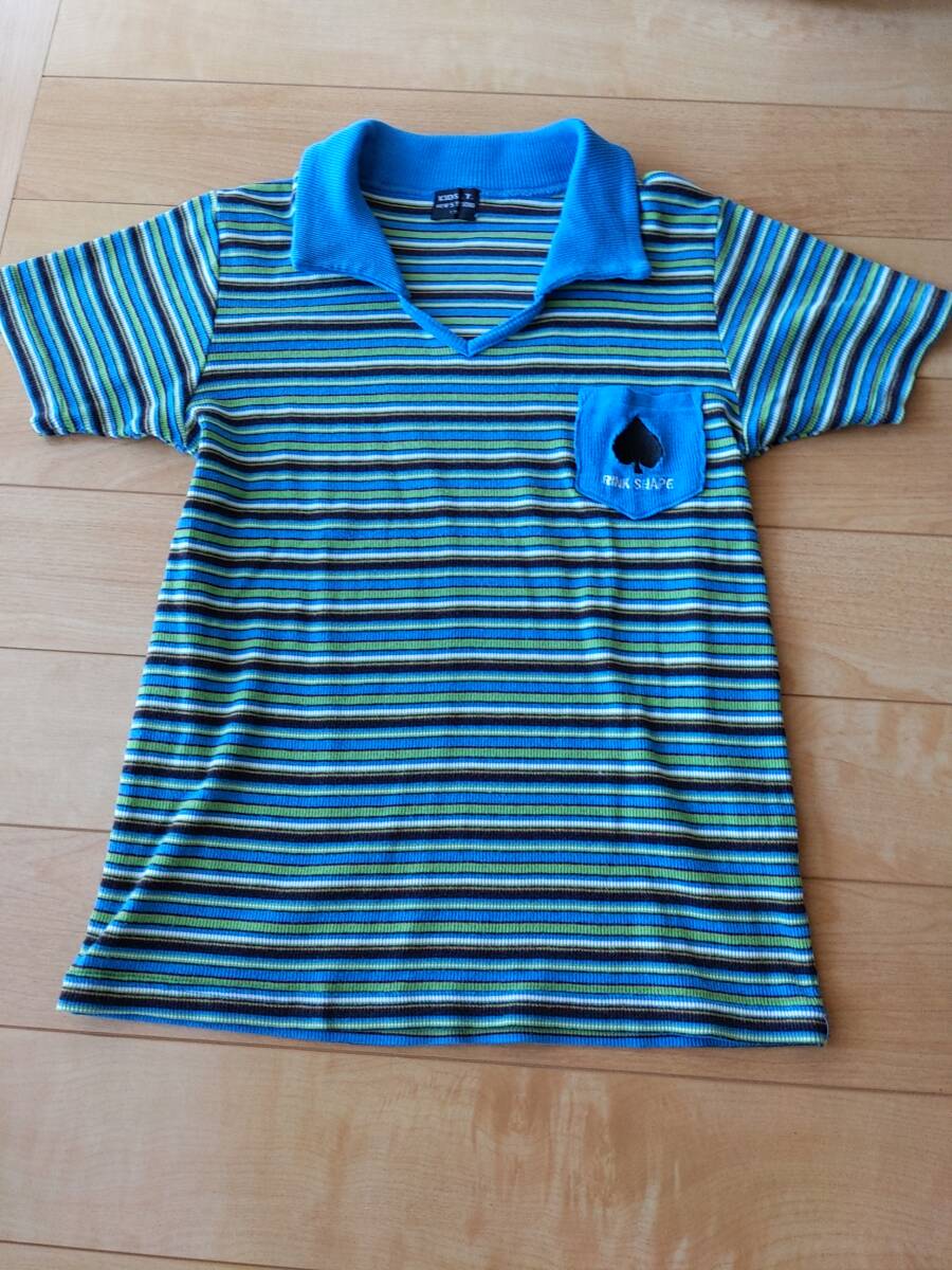 - 即決●送料無料【 襟付き★かっこいい★カットソー シャツ 半袖】★ブルーボーダー■レディース S 150cm ★KIDS S.T.