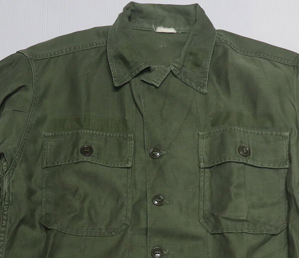 - LS74米軍実物ARMYアメリカ古着ユーティリティシャツUTILITYボックスシャツ60’Sビンテージ筒袖シャツ長袖シャツ綿100緑系S平ボタン