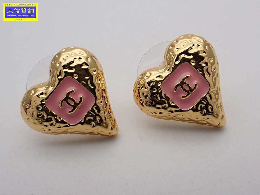> CHANEL シャネル スタッドピアス ココハート B23K 2023-24 秋冬 ピンク ゴールド ABC242 7.60g 中古A+ 【送料無料】 C-9173
