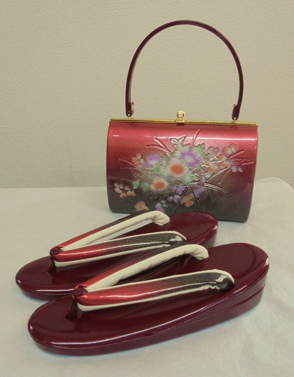 - 5473 振袖用 草履とバッグのセット フリーサイズ 「花・ワイン」-