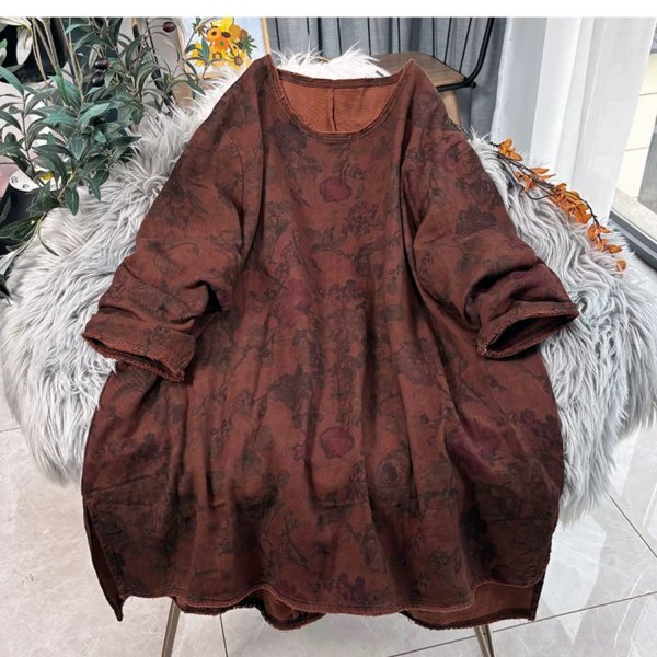 - hl ワンピース 高質 花柄 洋服ミックス アンティーク風 ロマンファッション 麻100% リネン RINEN タイプ2