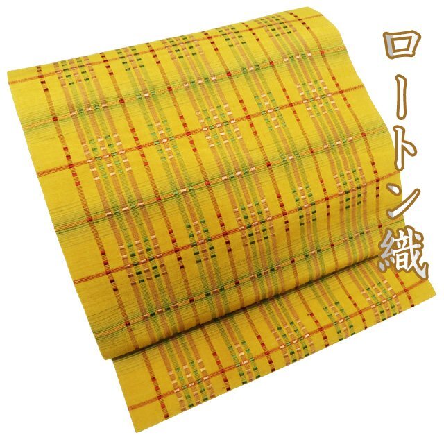 > 特選 名古屋帯 なごや帯 未使用 正絹 紬地 カジュアル 仕立て上がり 全通 琉球 ロートン織 山吹色 多色 きもの北條 A1088-7