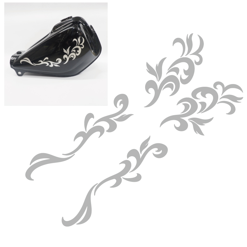 > (シルバー)シルバーリーフ トライバル カッティングステッカー ノーマルタイプ 左右セット フレア バイクカスタム タンクカスタム