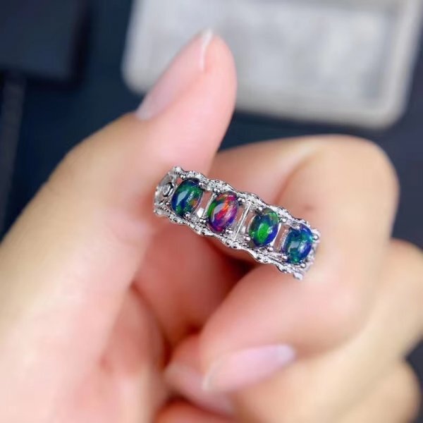 > 《最初の入札者様は開始価格で購入可能》925スターリングシルバーの天然オパールリング、証明書、米国サイズ6.5(日本の13号に相当) aa