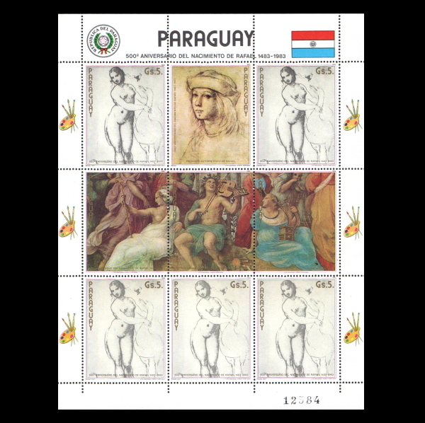- ■パラグアイ切手 1982年 絵画 / ラファエロ 500周年 シート(切手5枚)