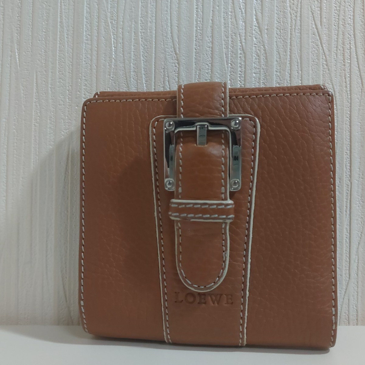 > ロエベ ベルトフラップ Wホック財布 レザー ブラウン シルバー金具