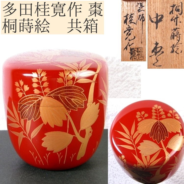 - 多田桂寛作 桐竹蒔絵 中棗 美品 共箱 茶道具/24i044