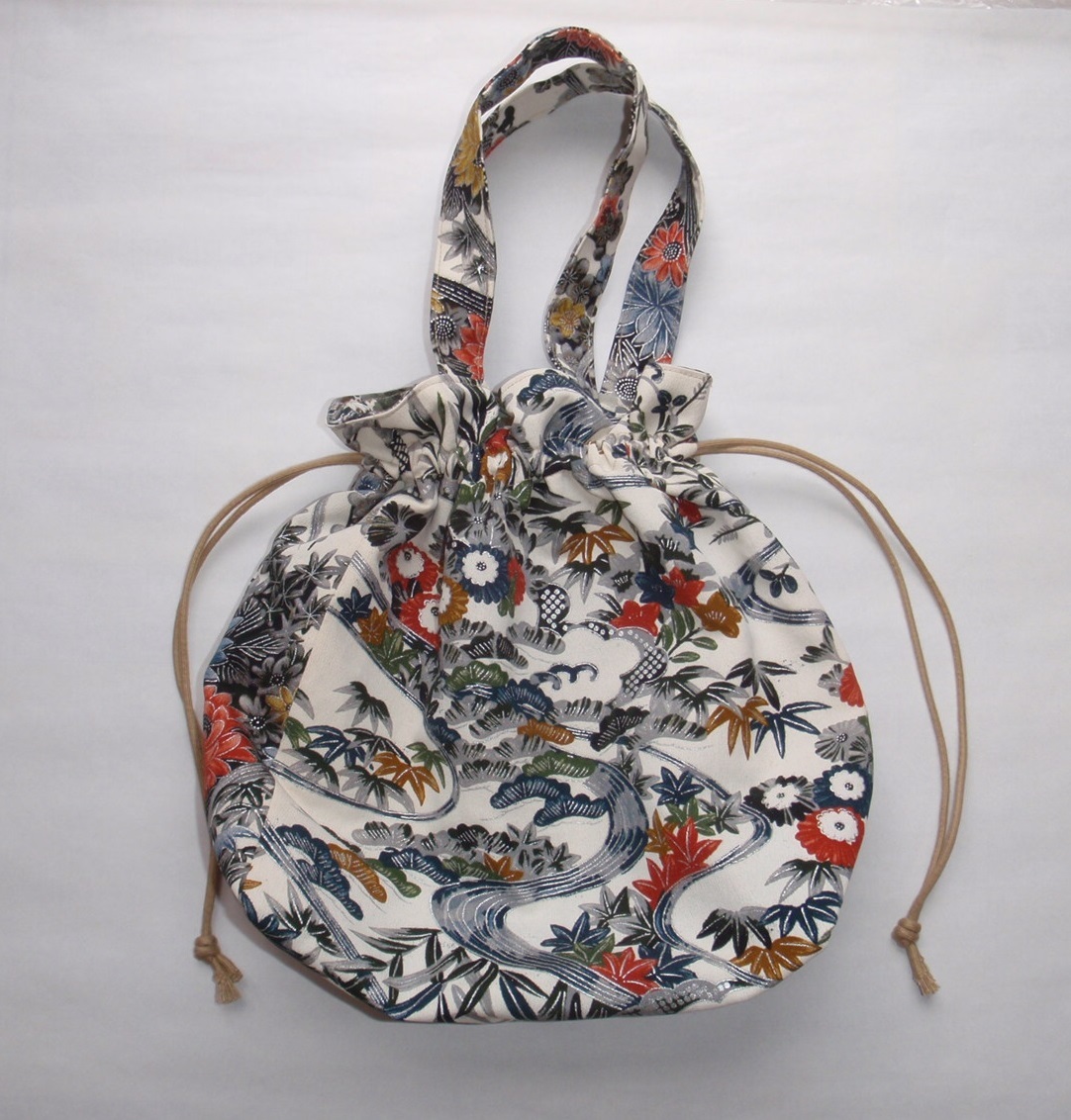- 昭和レトロ反物生地使用 ■巾着トートバック■ 京都誂友禅 正絹 ハンドメイド ②