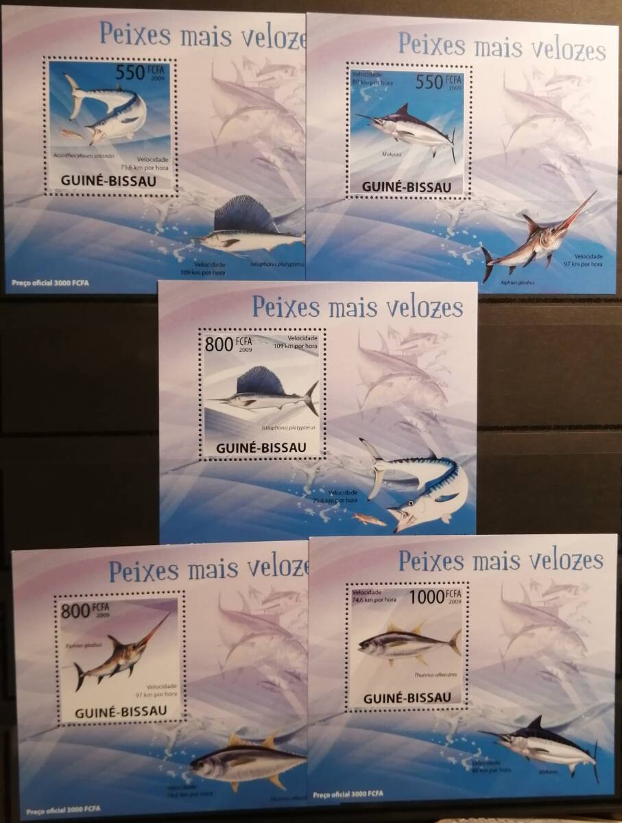 - ギニアビサウ(3) 魚(1種小型シート×5) MNH