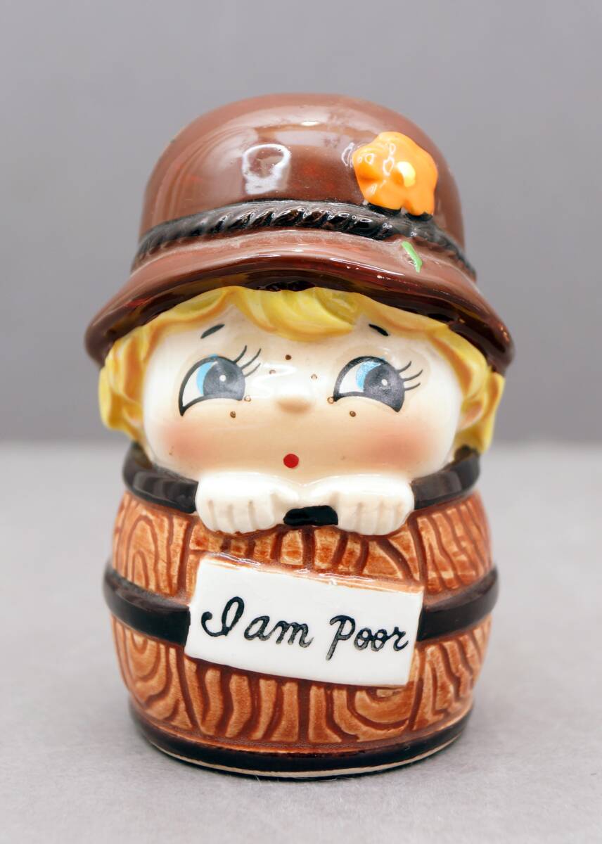 - 昭和レトロ 雑貨 I am poor 陶器製貯金箱
