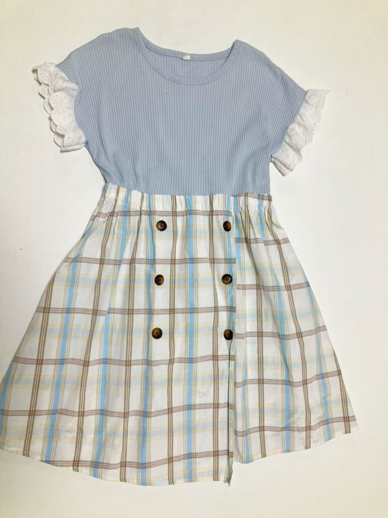 - 異素材ドッキングワンピース サイズ130 水色 袖レース
