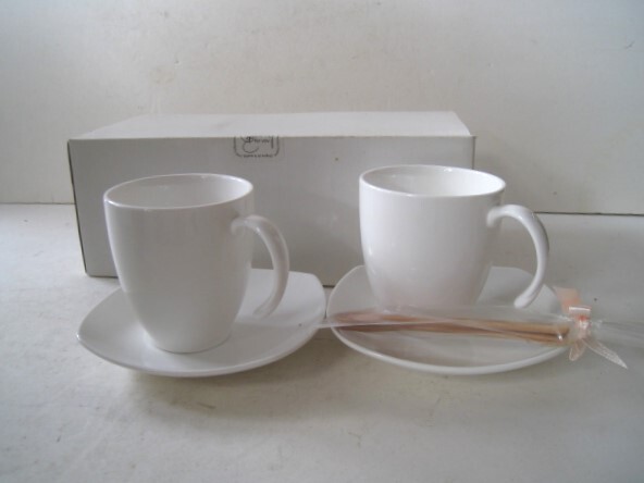 - 未使用品 エソジェルホワイト ペアカップソーサー コーヒーカップ 2個 白/24N9.19-22