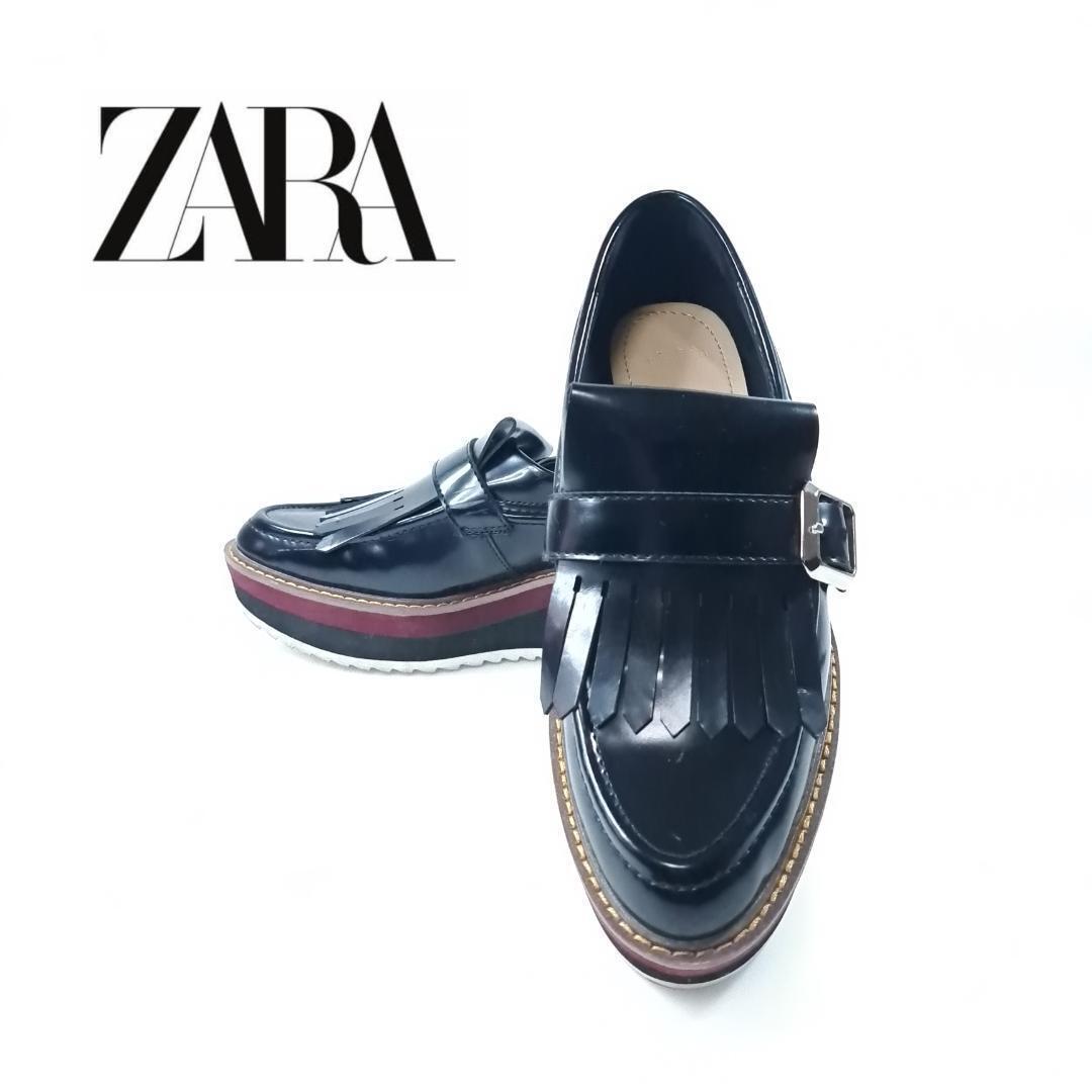 - 【美品】 ZARA Woman キルトローファー 厚底 37 ブラック ザラ レディース ベルト フェイクレザー hws00976