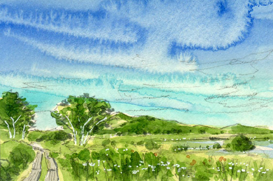 - 〇第8869号/木道と雲/長野県霧ヶ峰八島が原湿原/田中千尋(四季水彩)画 /プレゼント付き