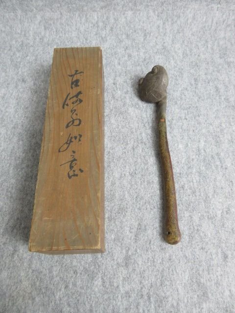古備前如意共箱です。寸法は長さ32cmです。状態は主観ですが綺麗だと思います。80サイズ、ゆうパックで発送を予定しています。商品画像が実際の商品そのものですので、ご入札前にしっかりとご確認いただきますようお願いいたします。タイトルと画像が異なる場合、当方のミスの可能性がありますので、お手数をおかけしますが、その際にはご連絡いただければ幸いです。また、気になる部分や詳細な画像が必要な場合は、質問からお気軽にご連絡ください。配送方法については、通常の配送にはゆうパックやクロネコヤマトを利用します。大型商品や重量のある商品には、西濃運輸、佐川急便を選択することがあります。軽量で壊れにくい小物には、クリックポストやレターパックを利用することもあります。同梱の場合は送料が変わることがある点、ご了承ください。商品の写真はデジタルカメラや照明、撮影環境により実物の色と異なる場合があります。「真作」とタイトルにある商品について、万が一真作でない際には返品を受けます。中古商品であるため、記載しきれない経年劣化や時代の汚れ、傷みなどがある場合がございます。十分なご理解をいただいた上で、ご入札いただけますと幸いです。皆様のご入札を心よりお待ちしております。他にも色々出品中ですので是非ご覧ください。