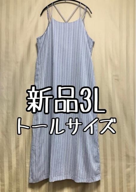 - 新品☆3Lトール♪パープル系♪涼しげ楊柳ストライプ♪キャミワンピース☆x384