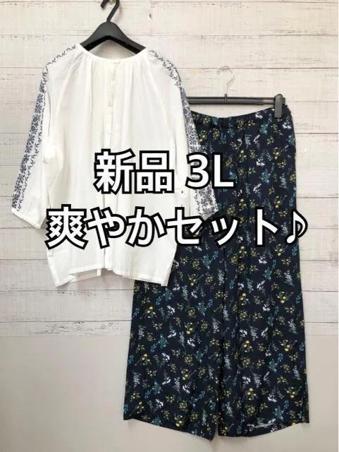 - 新品☆3L♪かわいい爽やかトップス&小花柄ワイドパンツ♪☆b295