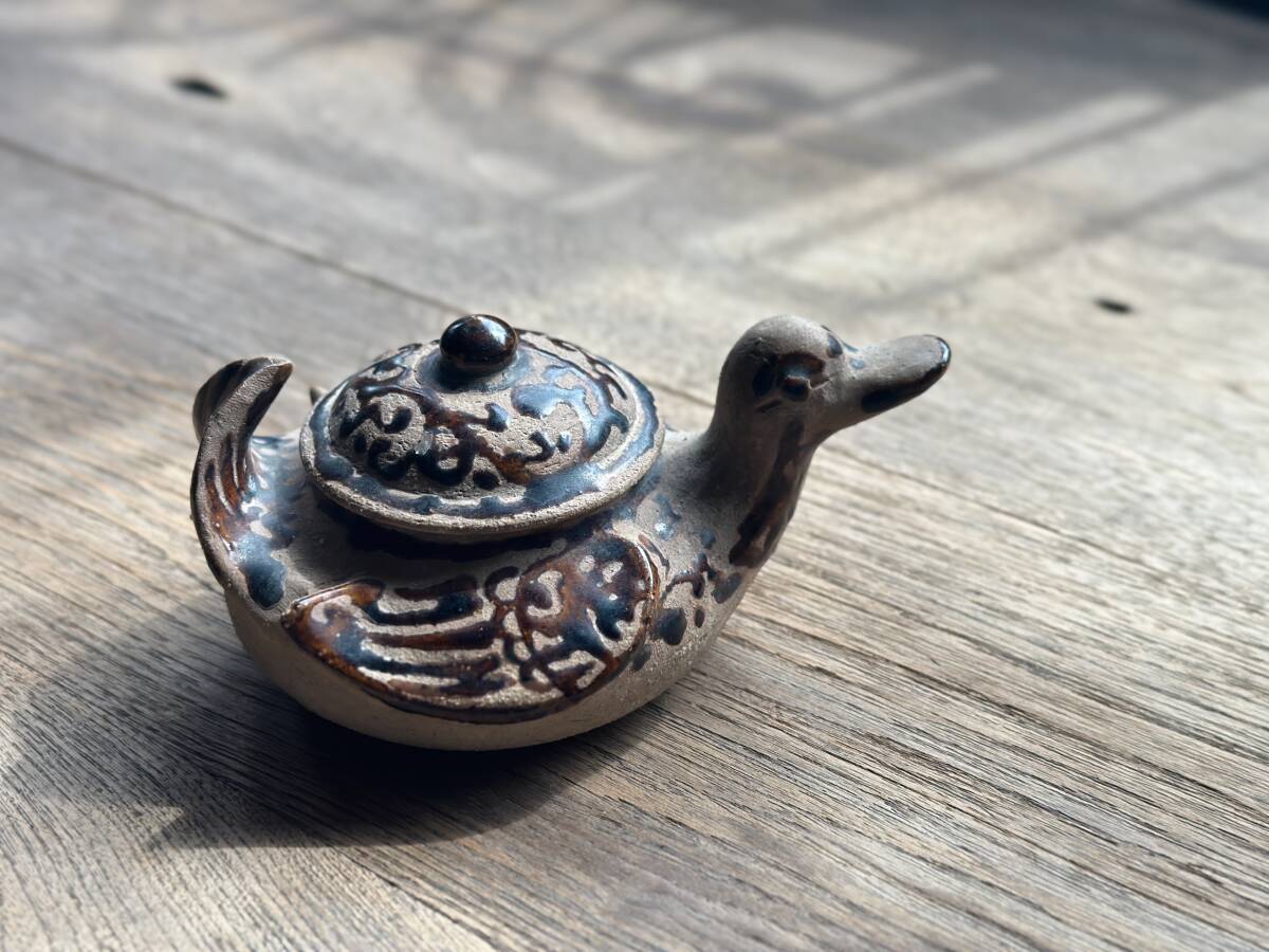 - ビンテージ 器 塩壺 ソルトポット タイ インテリア ディスプレイ 時代物 古美術 陶器 スコータイ王朝 モン族 陶器 鳥 アヒル