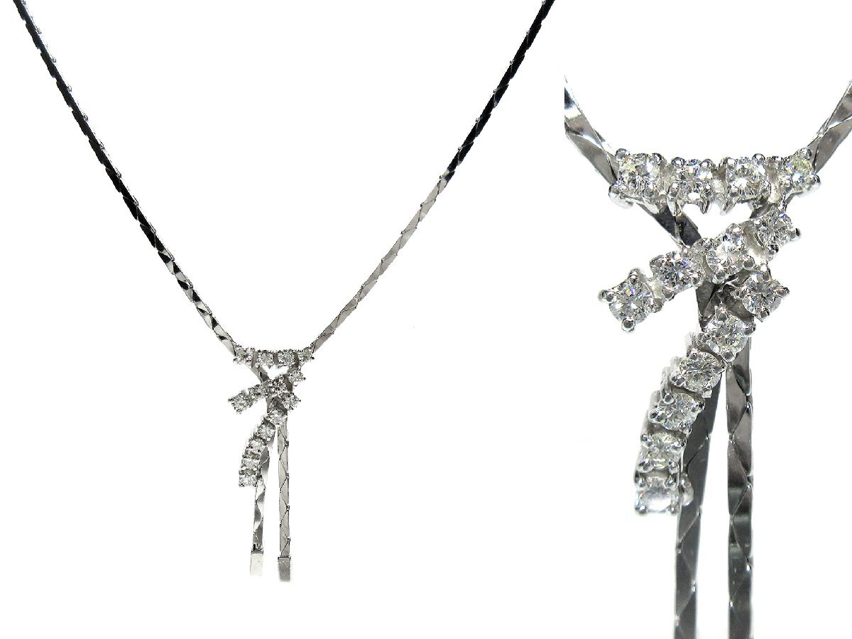 > K18WG 14P ダイヤモンド ホワイトゴールド タッセルデザイン ネックレス 43.5cm 14.6g J345