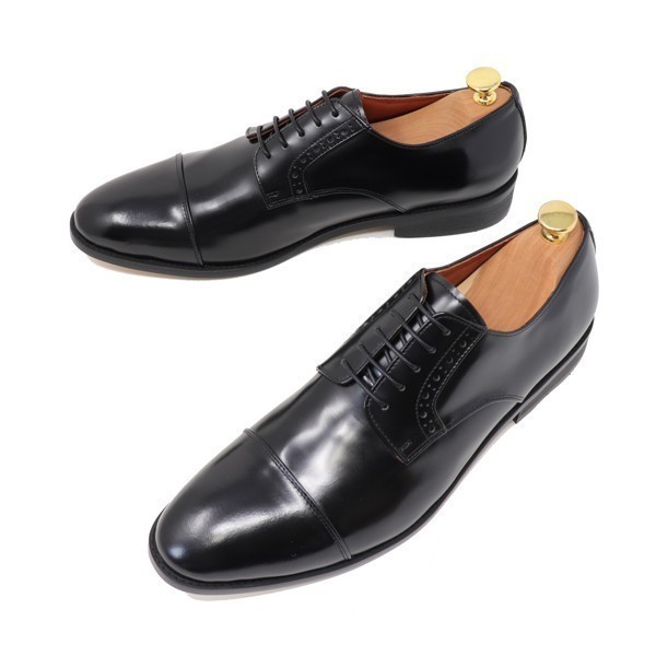 - メンズ 26.5cm ハンドメイド 本革 ラウンドトゥ ストレートチップ 外羽根 メンズ ビジネスシューズ マッケイ製法 靴 紳士靴 ブラック 3007R