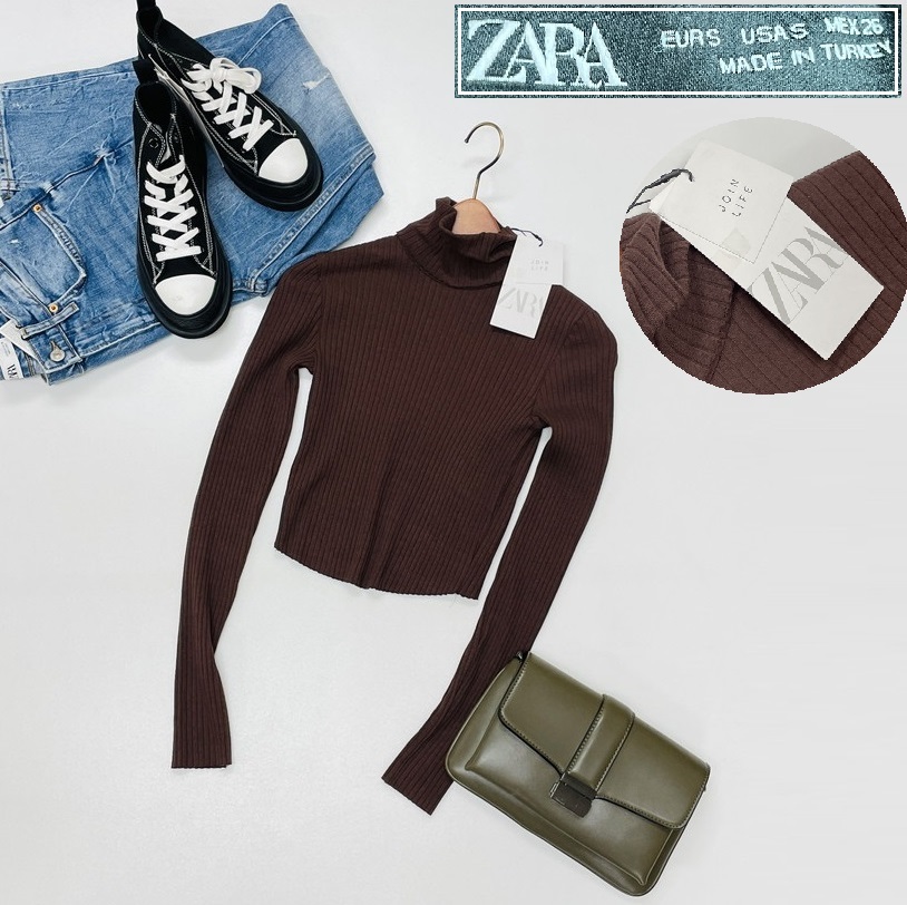 - /S/ ZARA ブラウン 長袖ニットセーター レディース タグ カジュアル トップス 通勤 タートルネック デイリー コットン 生地 ザラ