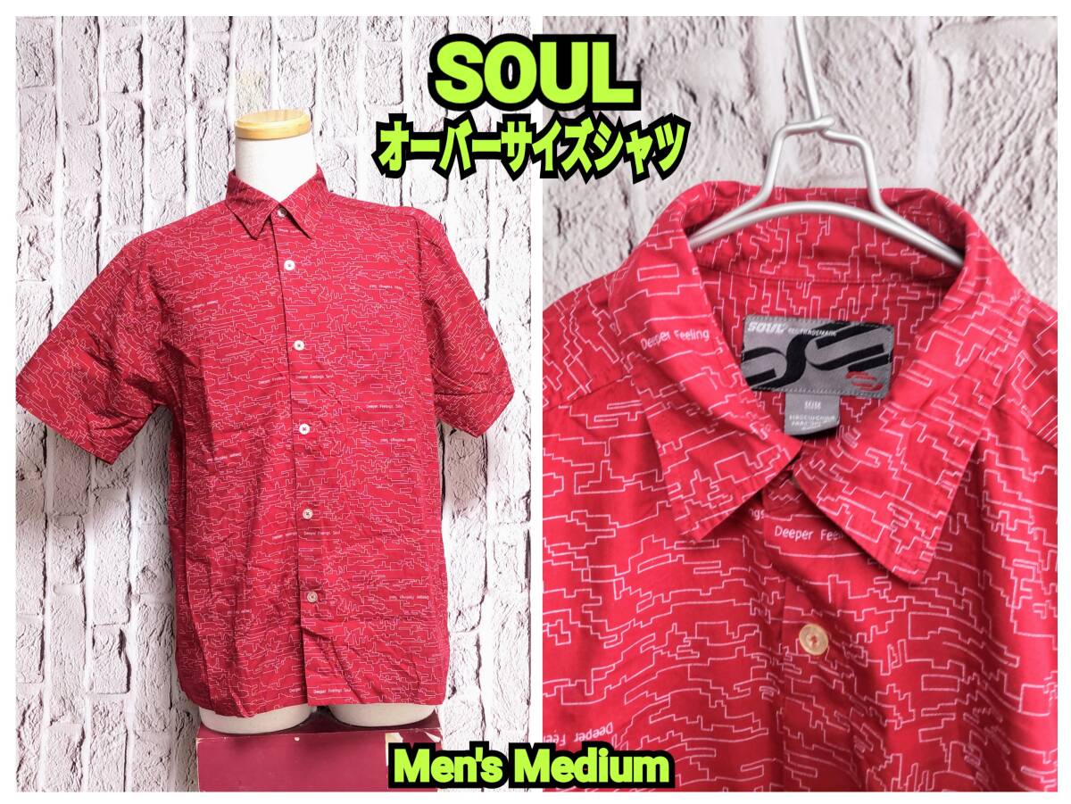 - ★送料無料★ SOUL デザインシャツ 柄シャツ ソウル オーバーサイズシャツ レッド Medium