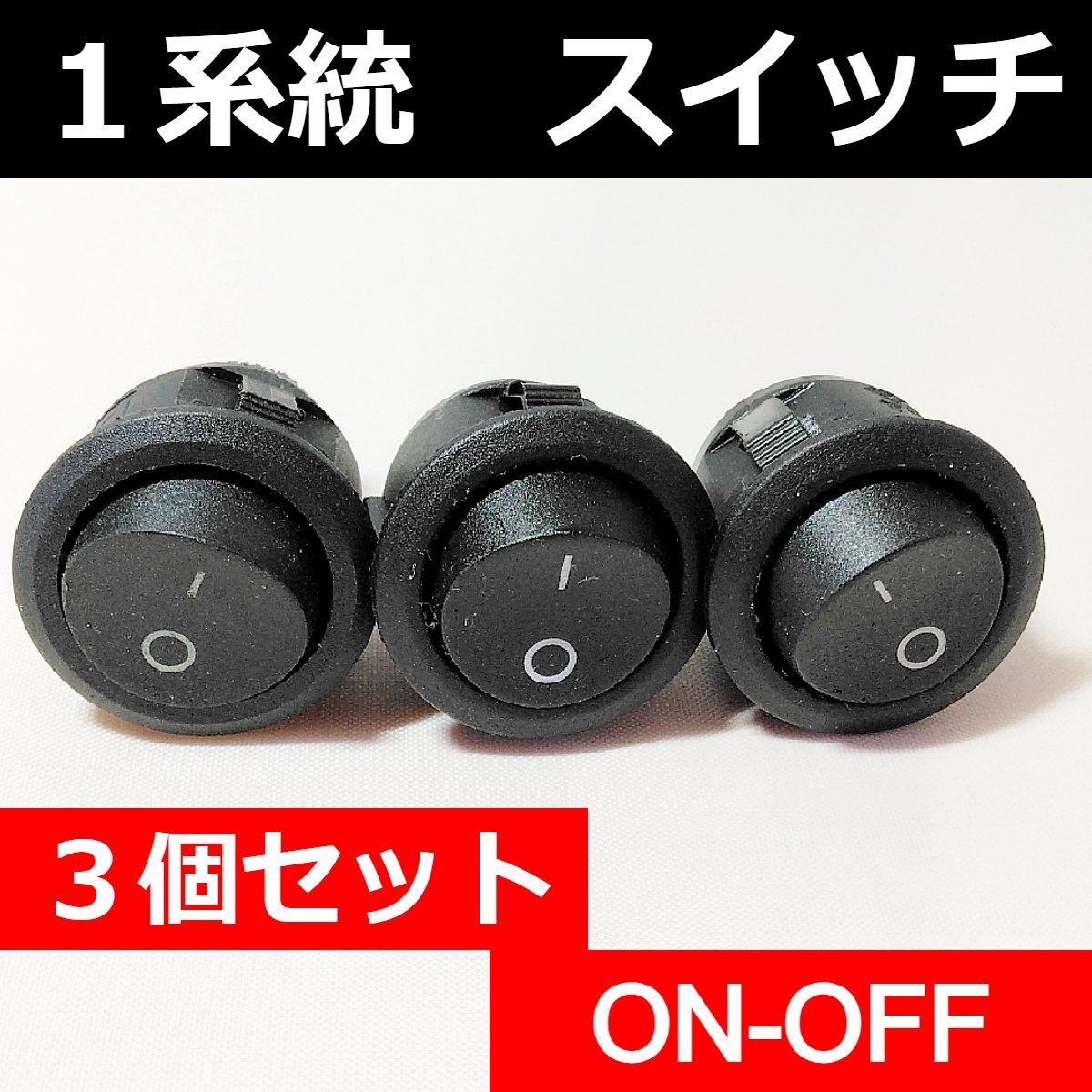 > 黒 ロッカスイッチ 3個セット★1系統 シンプル 2ピン 12V ロッカー 小型 丸型 ON OFF シーソースイッチ 汎用 埋め込み 波動 スイッチ