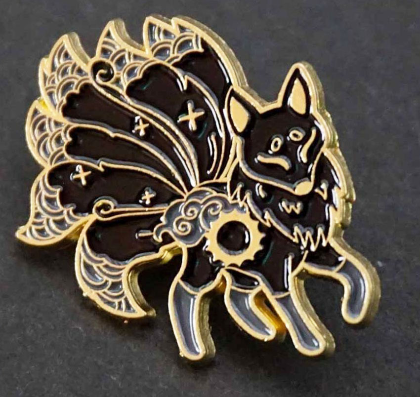 - 《六尾黒キツネJP守護神》■激渋『六尾狐・きつね・キツネ・狐』■ ピンバッジ バッチ■おしゃれ ファッション《開運 ラッキーアイテム》