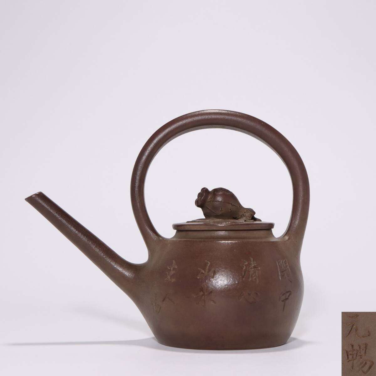 - 古陶芸 紫砂壷 明時代 【元暢】 製 「石榴長嘴提梁壺」 紫泥 煎茶 急須 茶道具 唐物 時代物 茶器 LT-241029