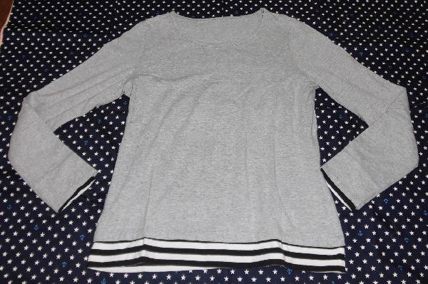 - 中古 Live in comfortの重ね着風長袖カットソー L 薄いグレー 親指ホールあり