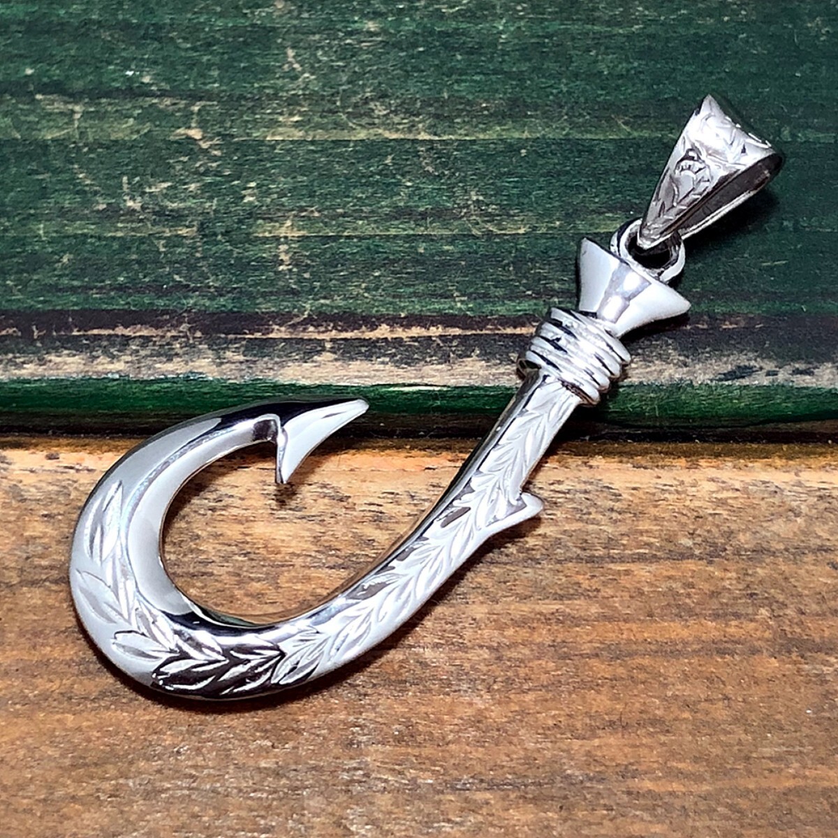 - 閉店処分在庫少ハワジュ好きに!NEWスクロールフィッシュフック釣り針★純銀本物シルバー925ネックレストップ 爆釣良波祈願