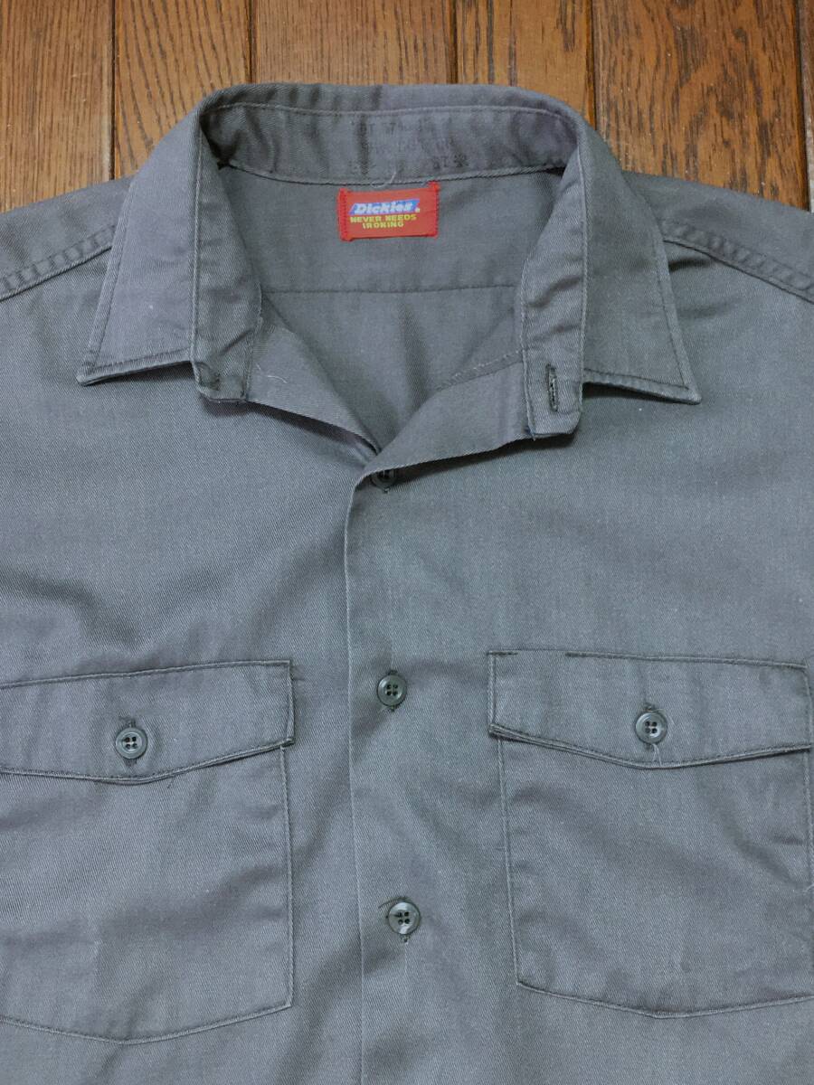 - ビンテージ ディッキーズ Dickies 赤刺繍タグ 長袖 ワークシャツ チャコールグレー 耳付き 検索 60s 60年代 スケート スケボー バイカー