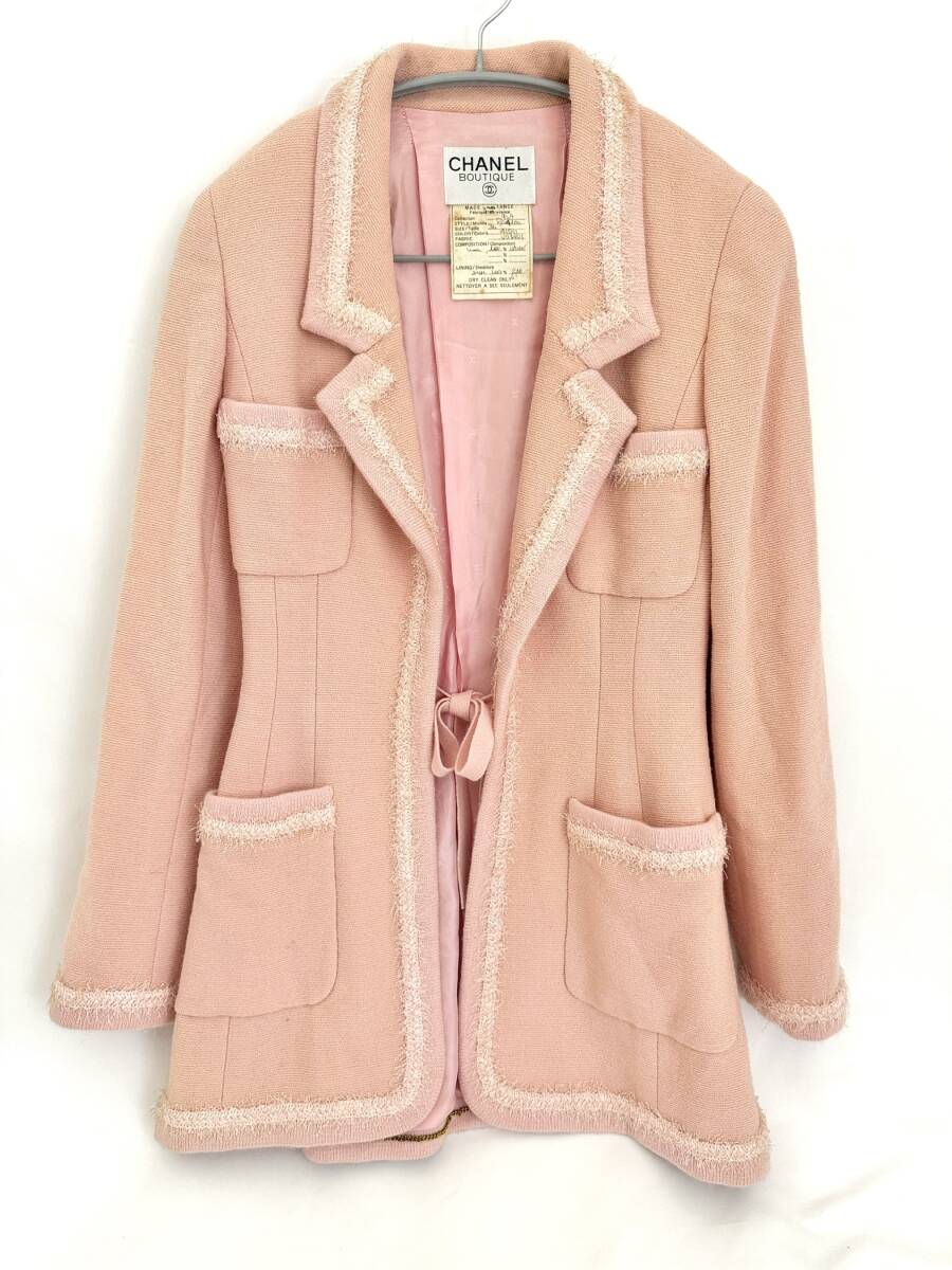 > 6J0604【本物保証】シャネル ジャケット ツイード トリミング ウール シルク ピンク ココマーク ボタン #36 94A CHANEL