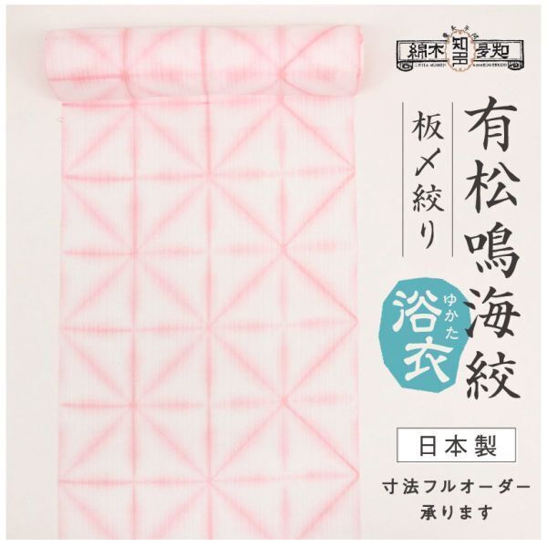 - 【有松鳴海絞り】 浴衣 反物 『板締め絞り』 知多木綿 淡ピンク×白 木綿 夏着物 お仕立て可 反23-33