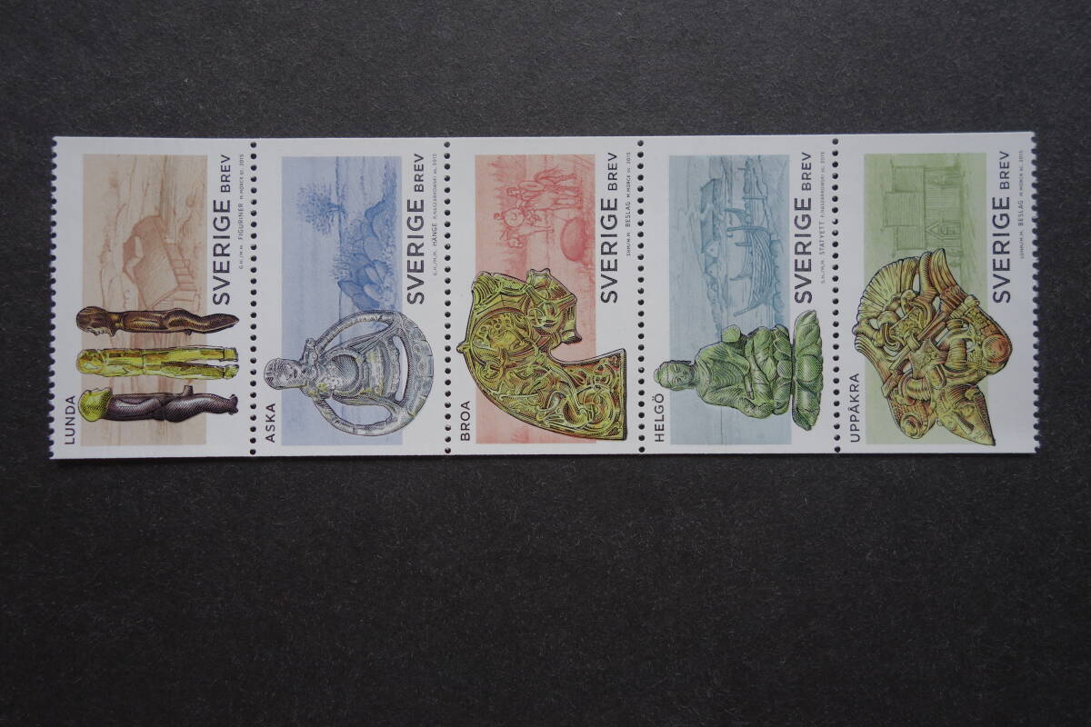 - 外国切手: スウェーデン切手 「鉄器時代後期」5種連刷 未使用